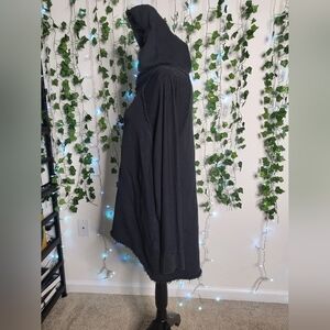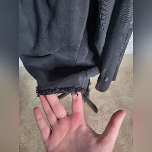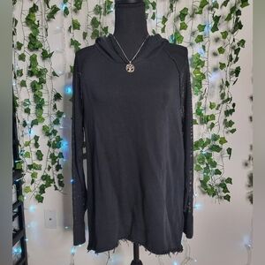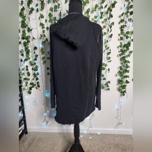 Elie Tahari Sport Mesh Sleeve Raw Hem Black Cotton French Terry Pullover Hoodie