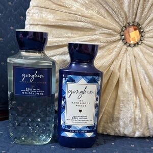 Bath & Body Works Gingham Body Wash and Lotion - Blue and Clear