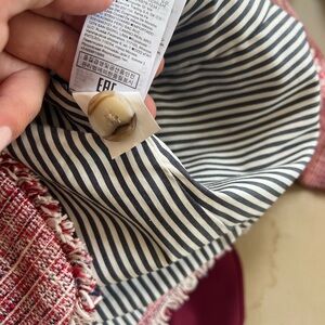 Great tweed blazer for fall, raw hems, cotton blend.