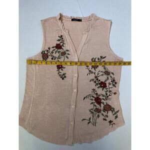 VTG Women’s Top Blouse SZ M PinkFloral Embroidered Sleeveless Boho Feminine