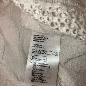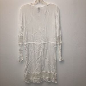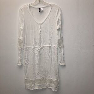 DIVIDED H&M Solid White crinkle versatile flowy long tunic top, dress or a swim cover - Has V-Neckline; Buttons partway down the front; Drawstring Adjustable Waist; Slimming Long Sleeves; Viscose fabric w/ Cotton Blend Lace Insert around hemline & sleeves; In very good condition and is Fresh & Clean and Ready-to-Wear - Has been laundered in Ecos non-scented soap and hung dry just prior to listing. Size Tag has been removed This item measures & fits as Size S. Read the measurements - Bust-40" / Waist-36"(before cinching drawstring) / Length-36".