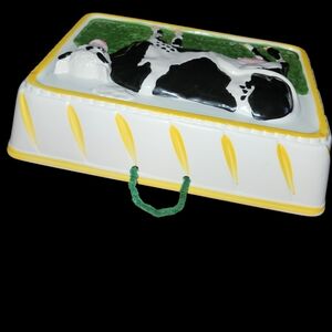 Charming ceramic hand painted wall decor/jello mold by Sigma Beauty. Features a smooth white, yellow,black,and white shiny glazed finish. Raised cow design. Vintage. Excellent condition. Andrea West for Sigma Taste Setter. Great Farmhouse style, Cottage Style. Or if you just like cows, as I do.