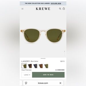 Krewe Landry Sunglasses in Haze with polarized lenses - new in box, never worn