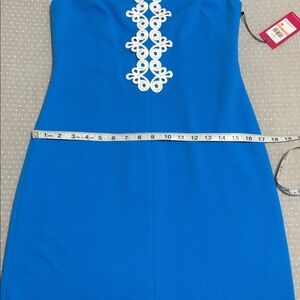 Chic Vince Camuto dress in vibrant blue. Features elegant white detailing. Size 2. New with tags!!