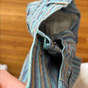 It appears that someone took in the jeans (pic of the back waist). Approx measurements: waist 14” across, rise 10”