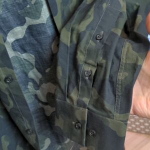 Hugo Boss men's bold camouflage pattern, long sleeve shirt. Perfect for casual outings. Comfortable fit.