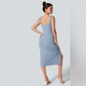 SoftlyZero Airy Square Neck Corset Ruched Split Bodycon Midi Dress