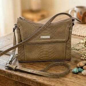 Beautiful and versatile The Sak crochet tote bag in a gorgeous neutral colorblock design. Features beige, black, and taupe/gray tones with sturdy cream straps and a secure zip closure. Perfect everyday bag – lightweight yet roomy enough for all your essentials. Classic The Sak quality with boho-chic vibes.