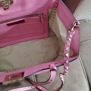 Bubblegum Pink Valentino Garavani Large rockstud tote purse w/ detachable rockstudded cross-body strap.