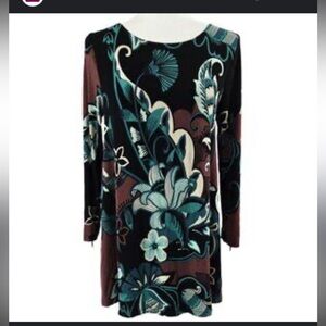 Chico's Travelers Womens Floral Tunic Top Sz 3 Multicolor 3/4 Sleeve