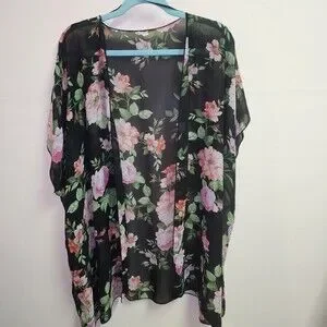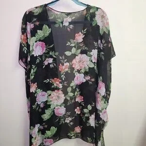 The Poetry Floral Open Kimono is a versatile and stylish piece that can be worn for various occasions such as travel, parties, casual outings, formal events, and business meetings. This one-size kimono features a beautiful floral pattern on a multicolor background, with 3/4 kimono sleeves and an open design for easy styling. Made from polyester, this coverup is perfect for all seasons and can add a touch of hipster, garden, beach, princess, or bohemian flair to any outfit. Whether you're looking for a chic and comfortable piece to wear during your travels or a statement piece to elevate your formal attire, this kimono is a must-have addition to your wardrobe.