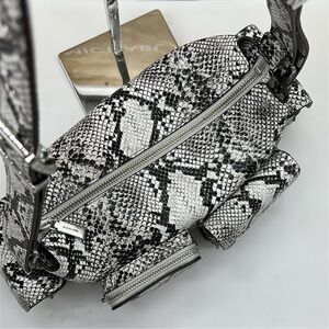 MICHAEL KORS Dakota Md Snake Embossed Leather Pocket Shoulder Bag ALUMINUM NWT