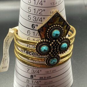 Signed Lucky Brand Bracelet Turquoise Elements Large Cuff Gold Tone NWT Western