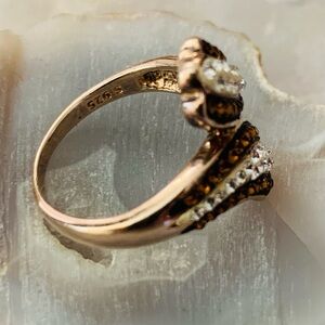 Stunning vintage ring with clear and brown crystals. Perfect for elegance.