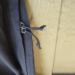 Self-stuffs into chest pocket with carabiner clip-in loop