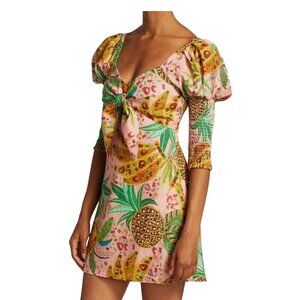 Farm Rio Mixed Fruits Mini Dress Womens Sz S Smocked Tropical Linen Blend Resort