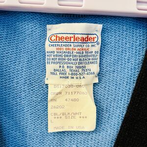 Vtg Varsity Cardigan Sweater L Blue Cheerleader Supply USA Orlon Acrylic Stripes
