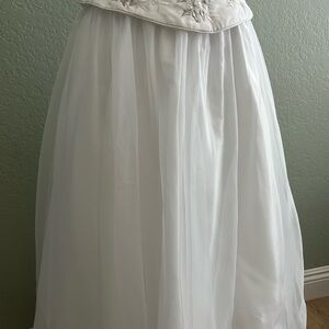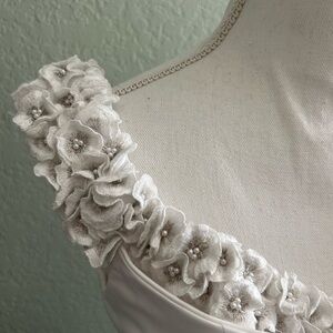 Stunning white gown with floral details. Perfect for special occasions!