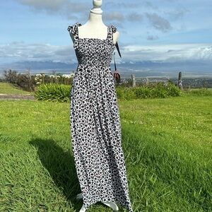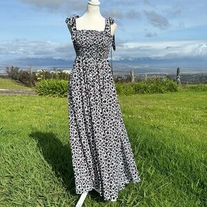 Diane von Furstenberg Target Smocked Tie Strap Neutral Poppy Midi Sundress Dress