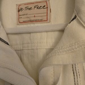 Chic off-white button-down by We The Free. Features stylish stitching and classic buttons. Perfect for versatile wear.