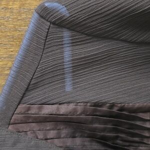 Elegant, sheer brown cap sleeve blouse with pleated front detail. Perfect for a chic and comfortable look. Measures 25 inches from shoulder to hem.