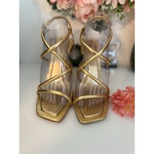 Schutz Women's Lovi Metallic Gold Tone Leather Strappy 4.5" Square Heels Size: 7.5. Brand: Schutz. Comfortable Square Heels and Front. Material: Leather. Condition: Pre-owned. Color: Metallic Gold . Great Condition!!! Only Signs of wear on Soles.