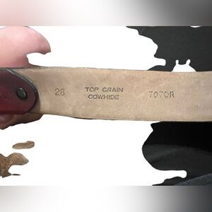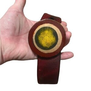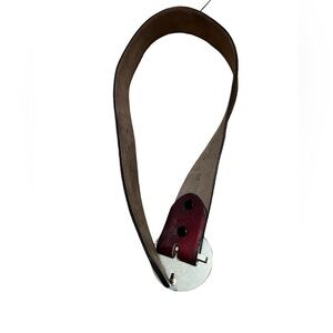 Belt red top grain cowhide leather with round metal buckle art to wear