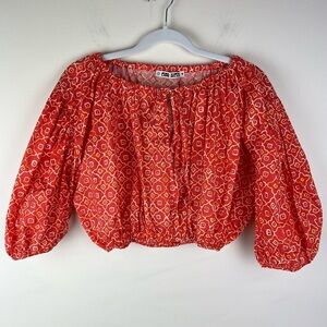 NWT Ciao Lucia Cottagecore Peasant Coastal Cowgirl Octavia Cropped Peasant Blouse Top In Poppy. Size Small.