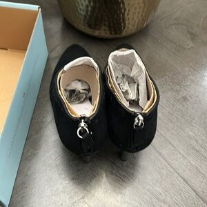 The perfection combination of a heel and a bootie. Stand out from the crowd in this incredibly comfy and stylish shootie. Microsuede upper with an almond toe, back zip closure, and woven faux leather piping detail.