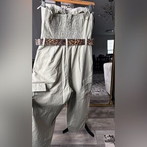 Zara Olive Green Zara Long Cargo Jumpsuit