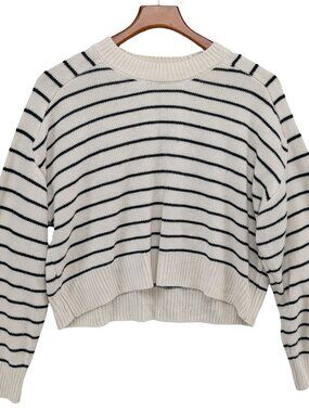 J.CREW Funnelneck Cloudspun Fleece Sweatshirt Womens White Navy Stripe LS Size S