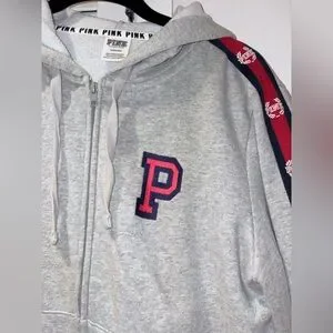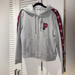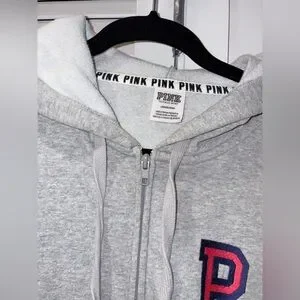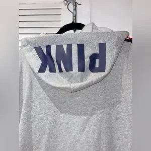 🩶VS Pink💙 Gray Zip Up Hoodie