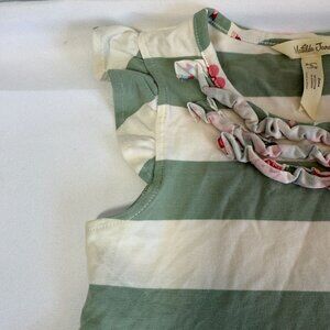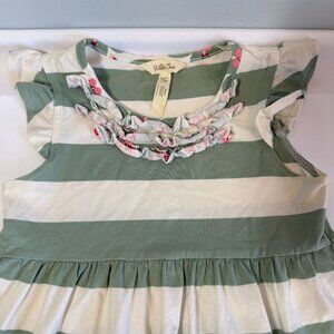 Matilda Jane Girls Striped Dress Size 6 Green/Cream Cap Sleeve Ruffle Collar