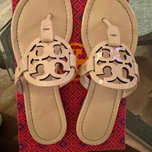 Chic blush sandals with a glossy finish. Ideal for everyday style. In great condition.