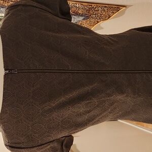 Elie Tahari Brown Print Fitted Zip Back Shift Dress Cap Sleeve SZ 6