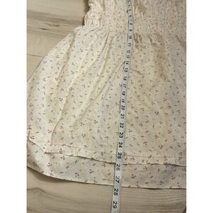 The Free People Women's Gabby Cherry Pattern Dress in size L is a stylish and comfortable option for any occasion. Made from 100% cotton, this sleeveless dress features a beautiful floral pattern with a tie closure and smocked accents. The short A-Line dress is perfect for parties or casual outings, with a vintage-inspired theme that is ideal for the spring and summer seasons. Easy to care for with machine washable instructions, this dress is a must-have for any woman looking to add a touch of flower to her wardrobe.