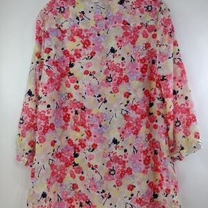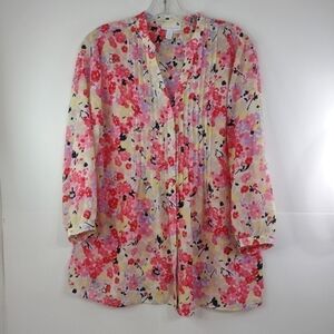 Charter Club women's pretty pink floral blouse 3/4 sleeve size (M). %100% polyester. pre-owned