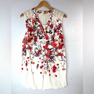 Market & Spruce 2X Sleeveless Lace Inset Floral Tunic Top in Red and White