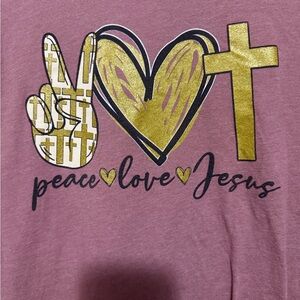 Love in Faith Peace Love Jesus Graphic Tee Women’s M Mauve Christian T-Shirt