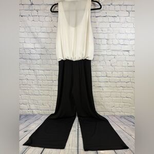 Karen Kane Off White Black Contrast Drape Front Minimalist Party Jumpsuit S