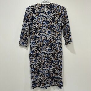 J Mclaughlin Women Catalyst Dress XS Blue Rayon 3/4 Sleeve Paisley Stretch Knee