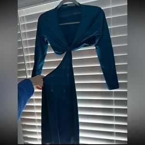 Features: Scoop neckline, ribbed hems, sott fabrication, lace collar, bowtie at front.