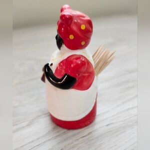 Mammy maid toothpick holder, Americana ceramic figurine from the 1940s. In mint condition except for a little missing red paint on the bottom. Perfect for collectors.