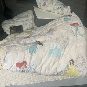 Cozy Pottery Barn comforter featuring Disney princesses. Perfect for a child's room. Includes 2 shams