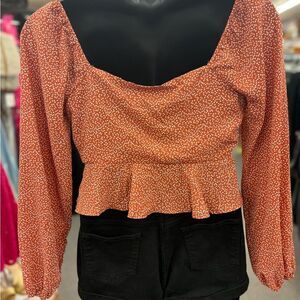 Alter'd State ladies Lg burnt orange w/ white spots crop top