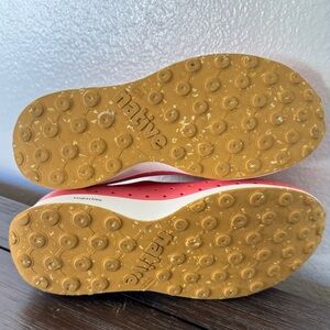 Vibrant pink slip-ons with perforated design. Lightweight and breathable.