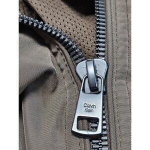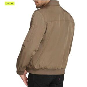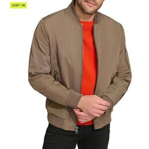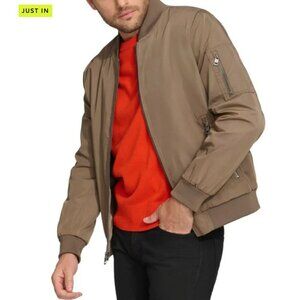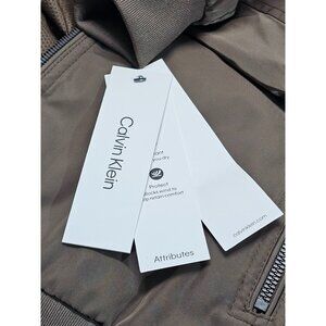 NWT Calvin Klein Men's Dark Tan Ribbed Collar Bomber Flight Jacket Sz Large 2763