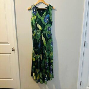 WHBM Green Floral Satin Hi Lo Maxi Dress 8 Mermaidcore Tropical Coquette Resero