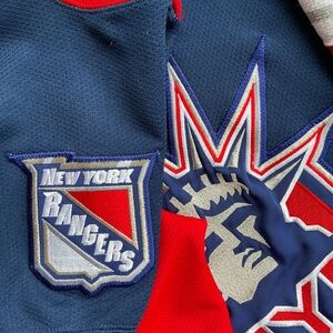 Starter Jersey with patches on each sleeve, liberty NYR Large in the middle.