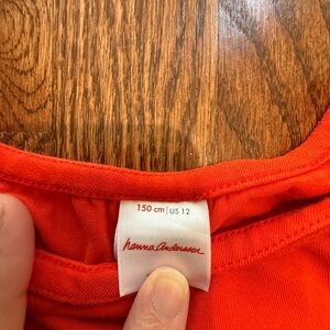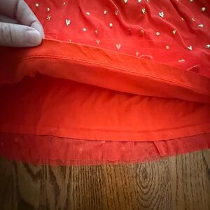 Play condition long sleeve red dress. Top is knit. Skirt is double layer tulle skirt with embroidered gold hearts and white bows. Perfect Christmas dress.